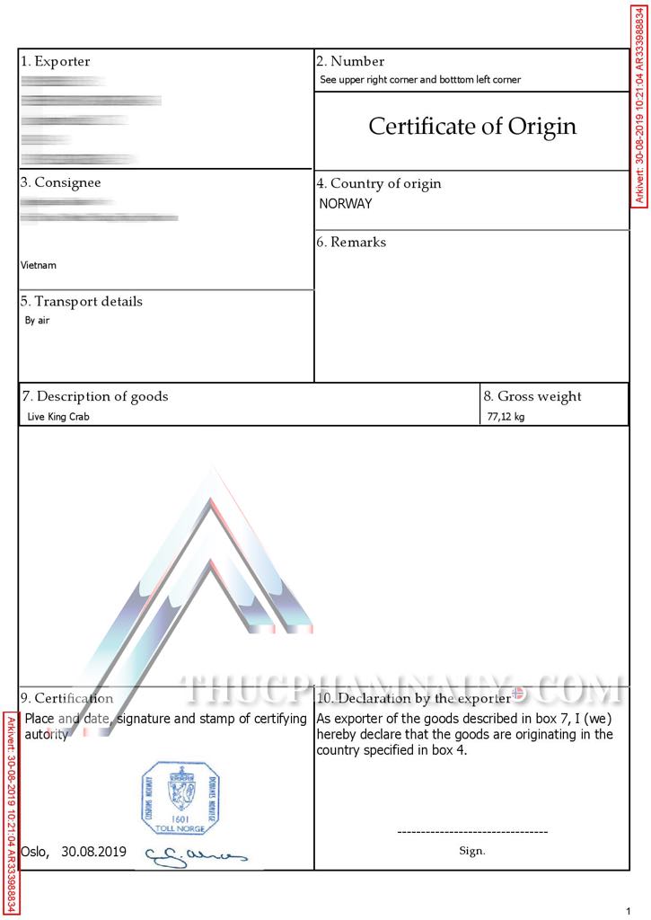 Giấy chứng nhận xuất xứ