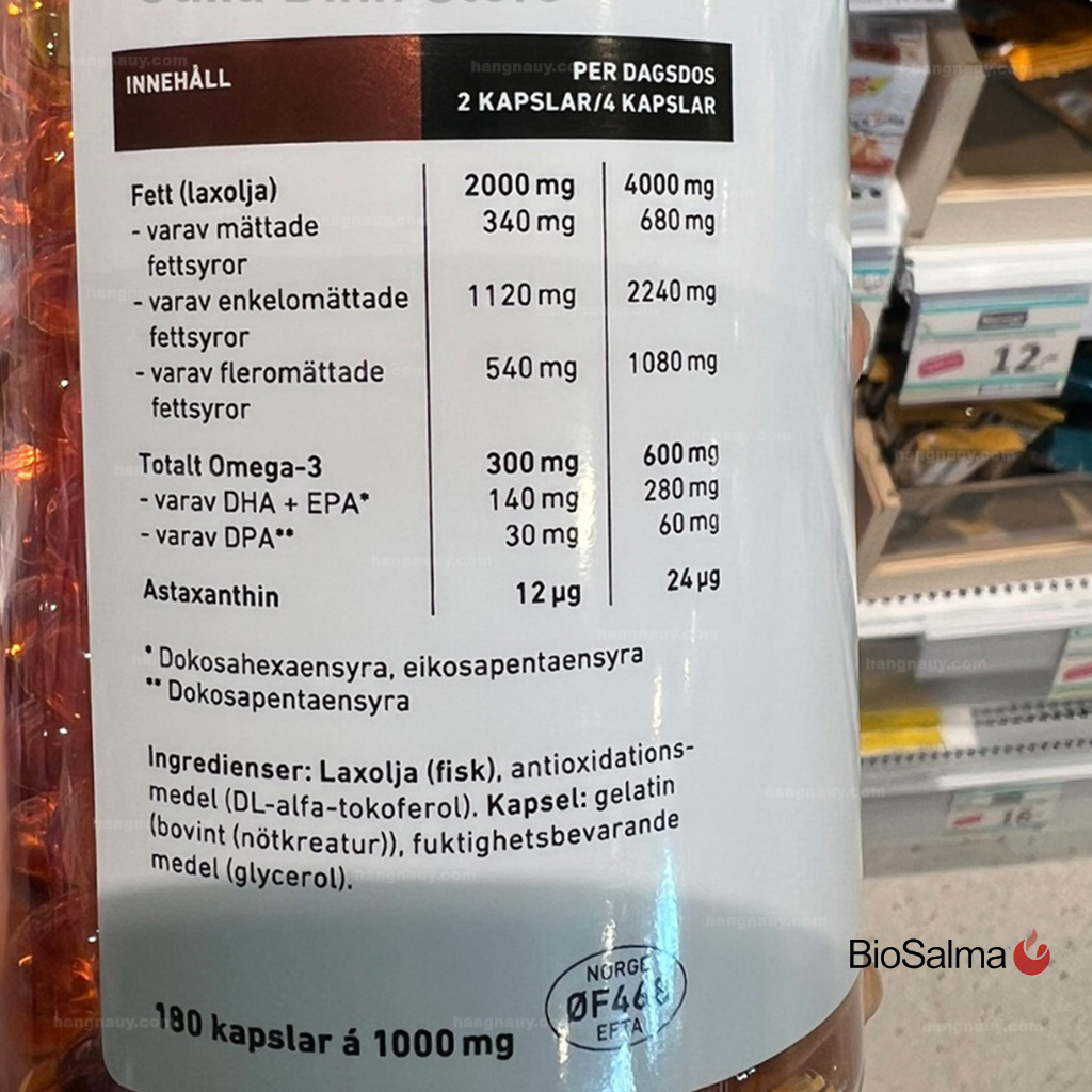 Sản phẩm này được chiết xuất từ cá hồi sống ở vùng biển sạch của Bắc Âu, nổi tiếng với hàm lượng Omega-3 cao và chất lượng tinh khiết.