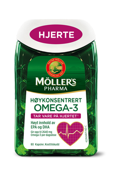 Möller's Pharma Hjerte là một chất bổ sung Omega3 có chứa dầu cá đậm đặc (66%) đáp ứng nhu cầu omega-3 hàng ngày của bạn với 1320-2640 mg mỗi 2-4 viên. Chất bổ sung chứa một tỷ lệ cao axit béo omega-3 EPA và DHA góp phần vào chức năng bình thường của tim. Hiệu quả có lợi đạt được khi tiêu thụ hàng ngày ít nhất 250 mg EPA và DHA. Möller's Pharma Hjerte chứa 640–1280 mg EPA và 480–960 mg DHA trong mỗi 2-4 viên nang.