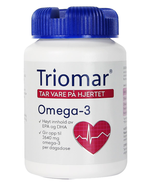 Dầu cá Triomar Hjerte chính là sự kết hợp độc đáo giữa dầu cá đậm đặc 66% chứa nhiều các axit béo Omega-3 như EPA và DHA. TRIOMAR HJERTE có thể cung cấp lượng Omega-3 mà cơ thể cần trong một ngày, bên cạnh đó sản phẩm này còn có thể mang lại cho bạn từ 1320 - 26400mg nếu sử dụng từ 2 đến 4 viên một ngày.