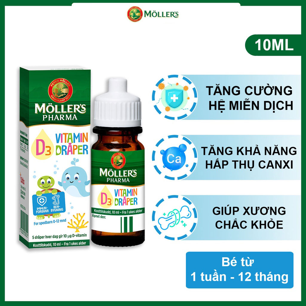Vitamin D3 Moller’s Na Uy cho bé từ 1 tuần tuổi (10ml)