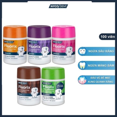 Viên ngậm chắc răng , ngừa sâu răng Nycodent Fluorix fluortabletter 0,25mg Fluorix nội địa Na Uy hộp 100 viên