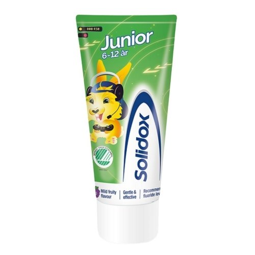 Kem đánh răng Solidox Junior với vị nho là một sản phẩm chăm sóc răng miệng chuyên biệt dành cho trẻ em từ 6 đến 12 tuổi. Với công thức đặc biệt và hương vị thú vị, kem đánh răng này giúp trẻ em có một trải nghiệm vui vẻ trong việc chăm sóc răng miệng hàng ngày.