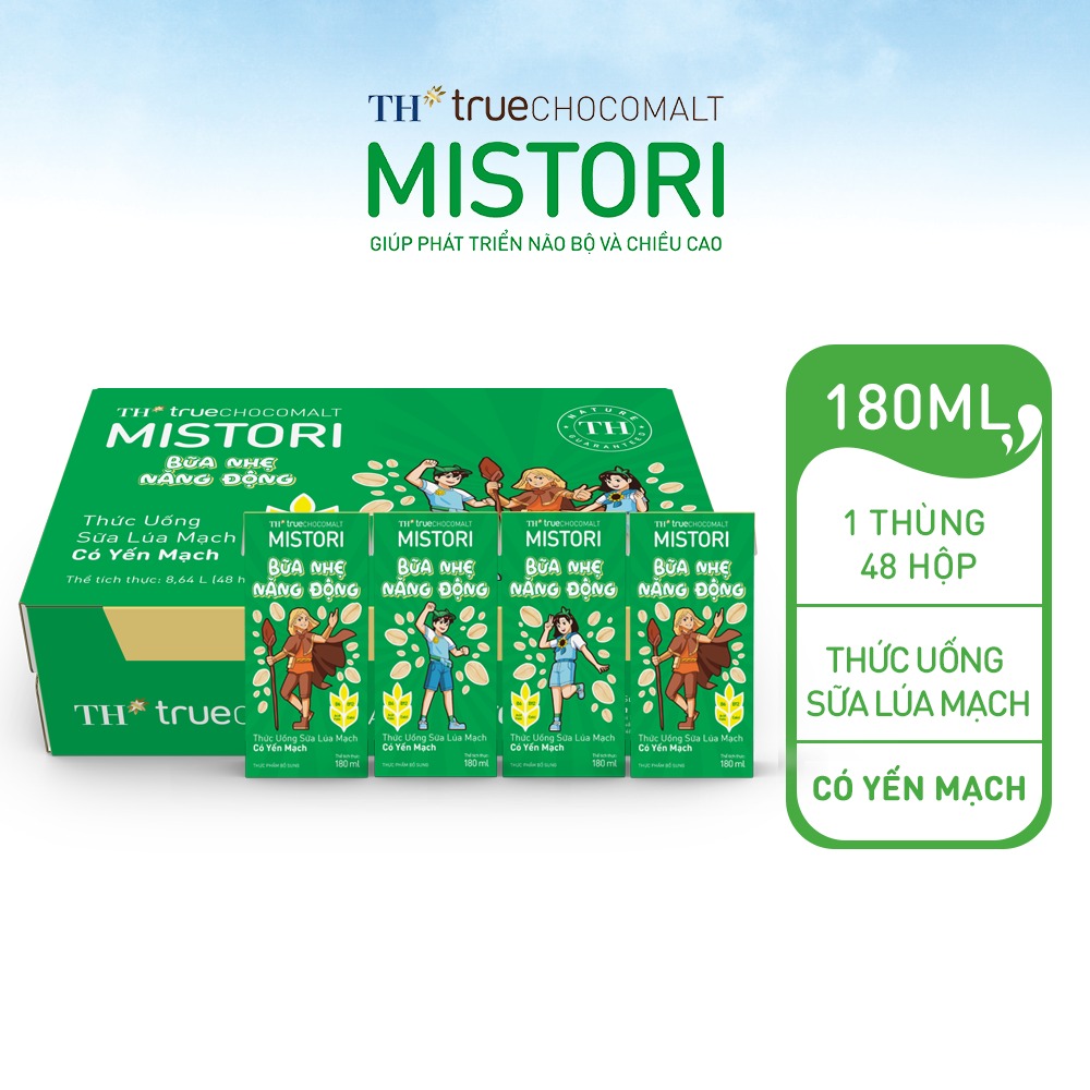 Thùng 48 hộp thức uống Sữa Lúa mạch Có Yến mạch TH true CHOCOMALT MISTORI 180 ml (180 ml x 48)
